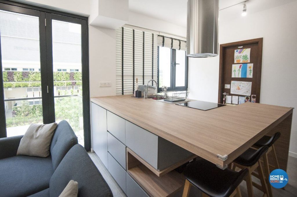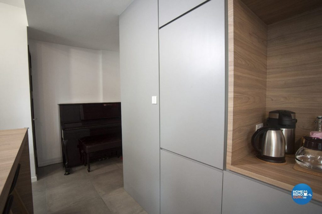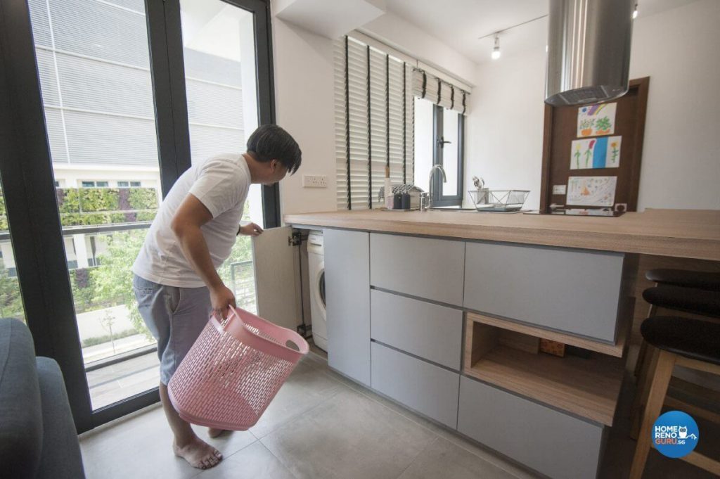 Jeremy: When I first saw the unit, it was actually a dual key apartment and space was the biggest concern I had. Hence, I threw the challenge to Joseph and team to help me solve it. He suggested to hack away the wall behind to create an open concept kitchen. On top of hacking the wall, Joseph and team also suggested solutions to declutter the apartment. By concealing our refrigerator as well as washing machine inside the kitchen cabinets.