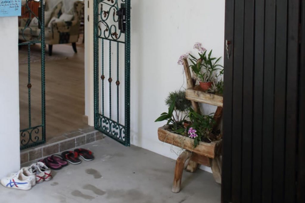 The entrance design always manifests the first impression on anyone who enters a home, and this particular entryway foyer makes an instant impact thanks to Mashita’s massive collection of country style décor. The classic wrought-iron style door sets an artsy, stylistic tone that carries throughout the rest of the home interior. Featuring a plethora of cottage-chic decorations, the space immediately feels less formal and more homely. Upon entering the house, guests are welcomed with a lovely flower stand and a customized initial plate reading “@KLMM❤HOME.”