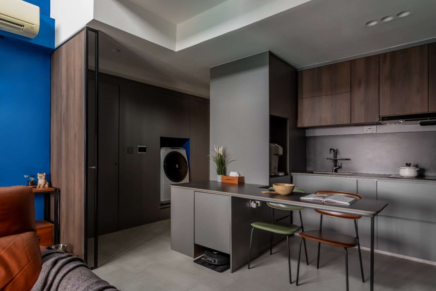 To make the most of the layout, we made a bold yet practical move: sealing off the original common bedroom door. This allowed us to free up valuable space in both the living area and the new multipurpose room. With this shift, the spatial flow improved dramatically and it opened the door (quite literally) to a more intentional design.