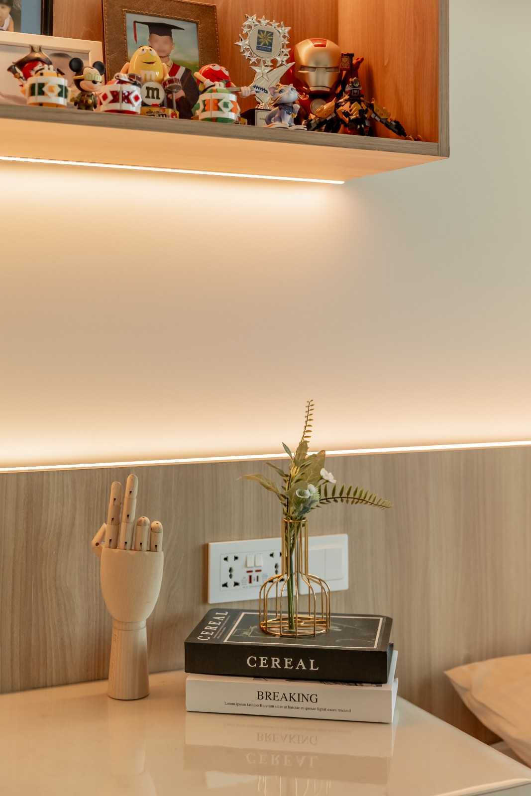 The custom L-shaped layout, full-height wardrobes, and sleek work desk that seamlessly extends to the platform bed make the room feel open and practical. It’s designed to grow with him while keeping a calm, inviting atmosphere.