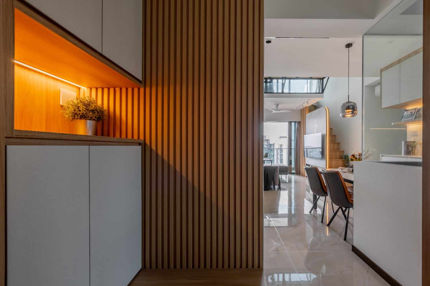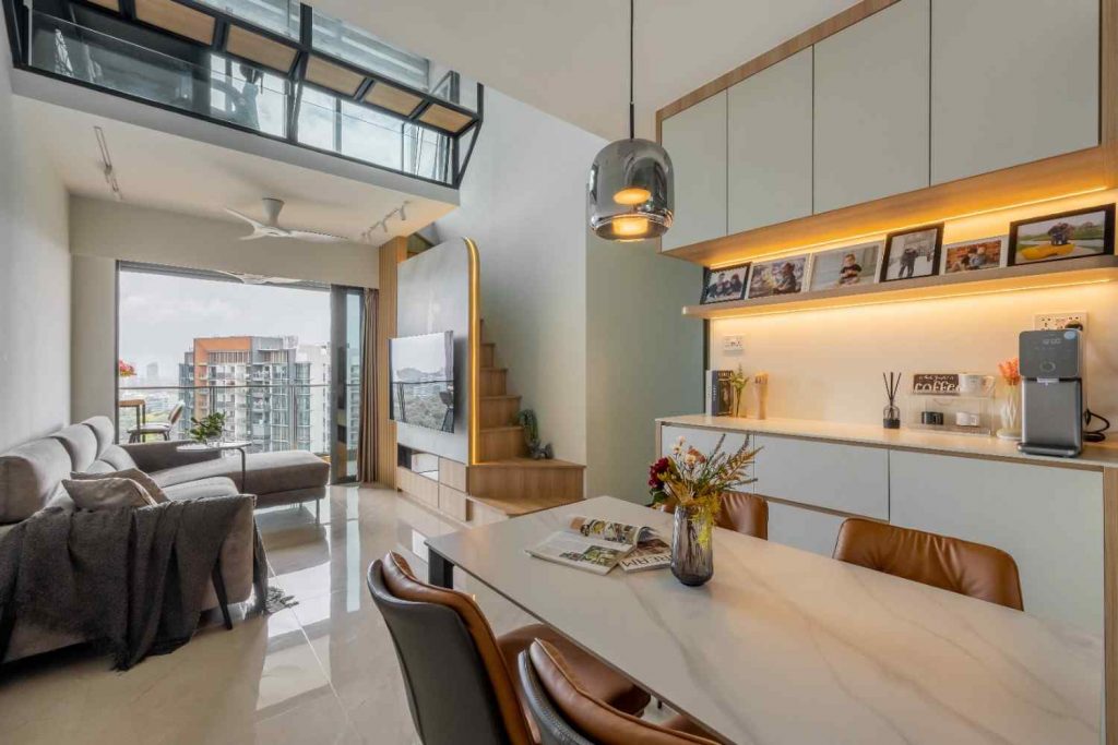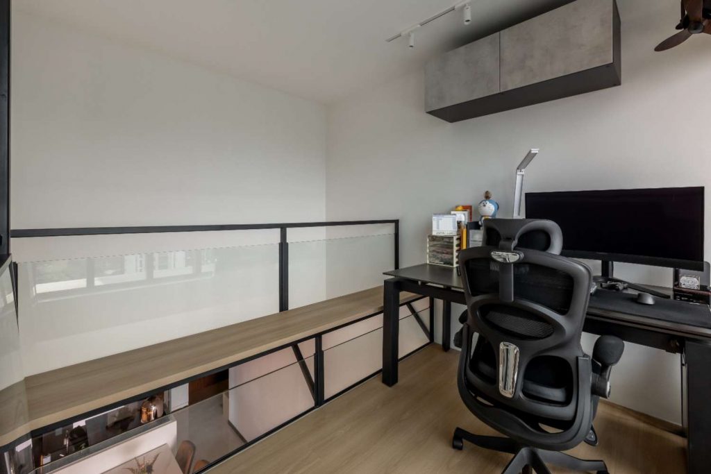 This is a new condo apartment where a family of four lives. The developers had included some built-in features, but the homeowners didn’t really vibe with them. Instead of the more modern luxury style in the existing design, they wanted something cosier and more Scandinavian-inspired. With its soaring ceilings, the loft transforms into a striking space that blends work and play. Thoughtfully designed, it functions as both a cosy gaming nook and a productive home office.