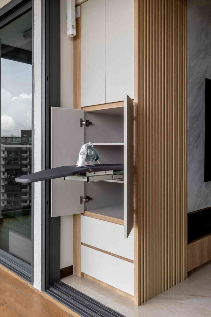 There is even a hidden storage space accessible from the balcony, where the family stores their laundry essentials and a pull-out ironing board for their convenience.