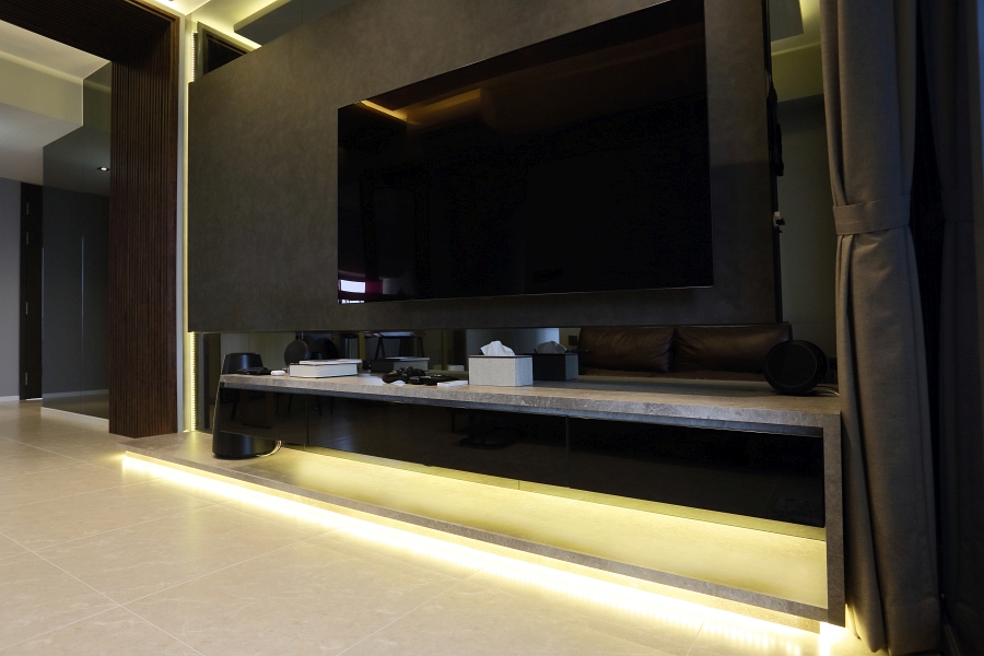 The renovation took 4 weeks, complete with customized storage, concrete sceeding and LED ceiling inlays. “When they explained the design theme to me, I never imagined how the ideas would pan out,” shared Benedict, “but everything turned out amazingly. I loved how spacious my living room is.” Everything in this apartment reflects Benedict’s personal taste.
