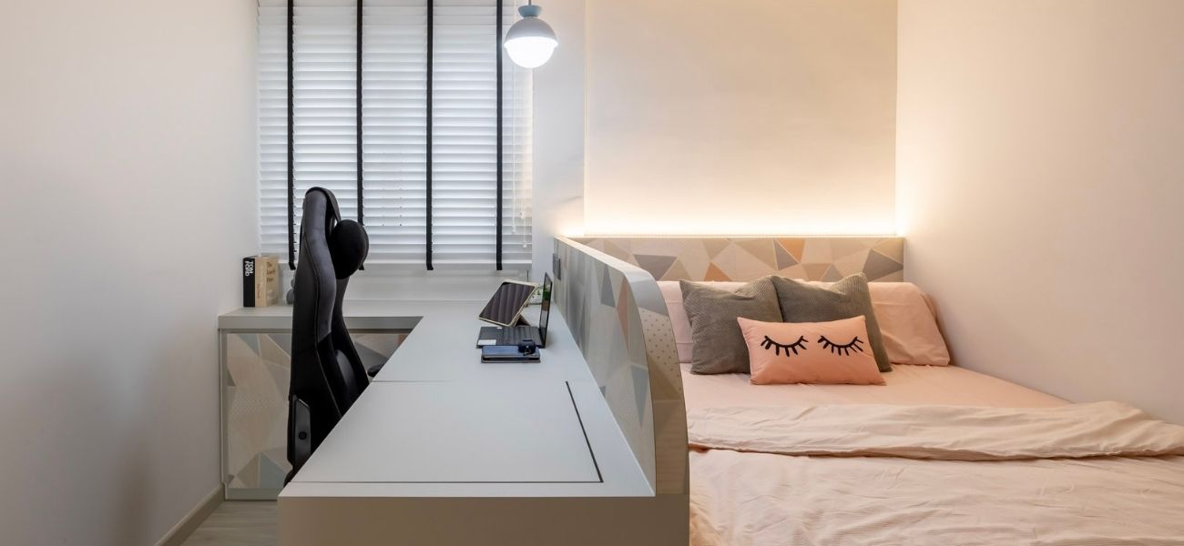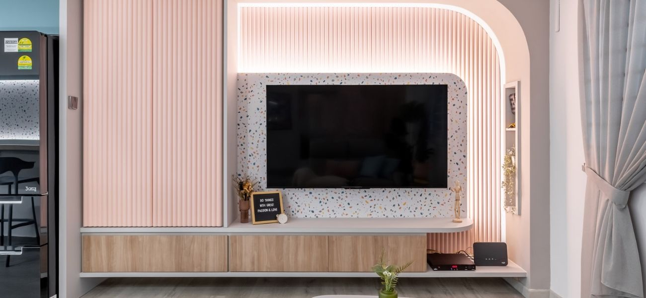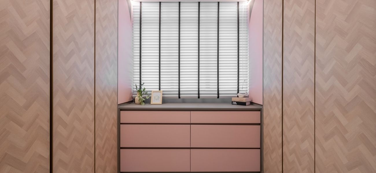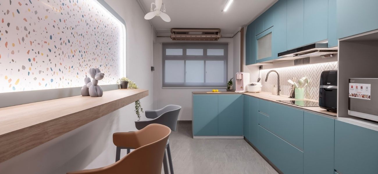 Everyone's idea of a comfortable and pleasing space differs, but for this family, the goal was to create a playful, fun, feminine, and elegant home that is also practical and easy to maintain. The flat was previously dim, outdated and run-down with wood cabinetry and doors in varying tones of orange, dated fixtured and mismatched floor tiles. The family has lived in this house since 2000 and decided to do a full-scale overhaul.