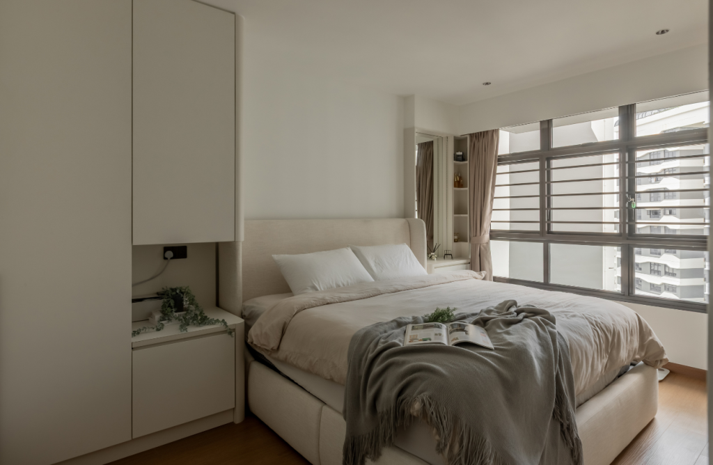 Whites, greys, and light woods make compact layouts feel airy and relaxing. These palettes complement most home renovation ideas in Singapore.